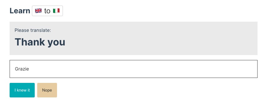 Now, I want to use the same method to learn Italian phrases for my trip. So, as a better developer now, I'll make a proper app and host it somewhere ๐Ÿ™‚